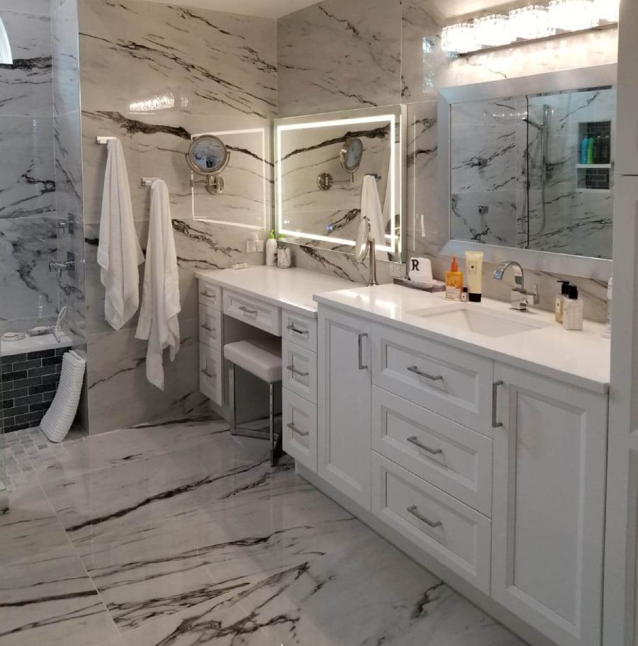 From cabinet installation and countertop fabrication to flooring, tile work, and fixture upgrades, every project receives dedicated oversight from consultation through completion. Our crews coordinate cabinetry, surfaces, plumbing, and electrical — giving you one point of contact and consistent craftsmanship whether you’re updating a single bathroom or multiple rooms.