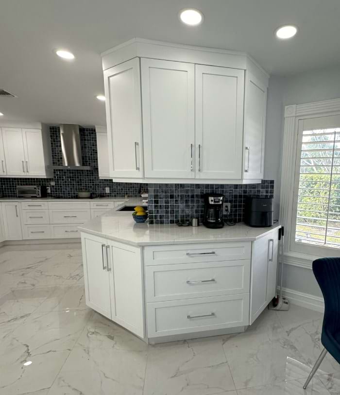 Most projects take two to four weeks depending on scope and complexity. During your consultation at our Boynton Beach showroom, we provide a detailed timeline covering measurement, fabrication, and installation phases. Larger kitchen projects or whole-home installations may require additional time to ensure everything is completed properly.